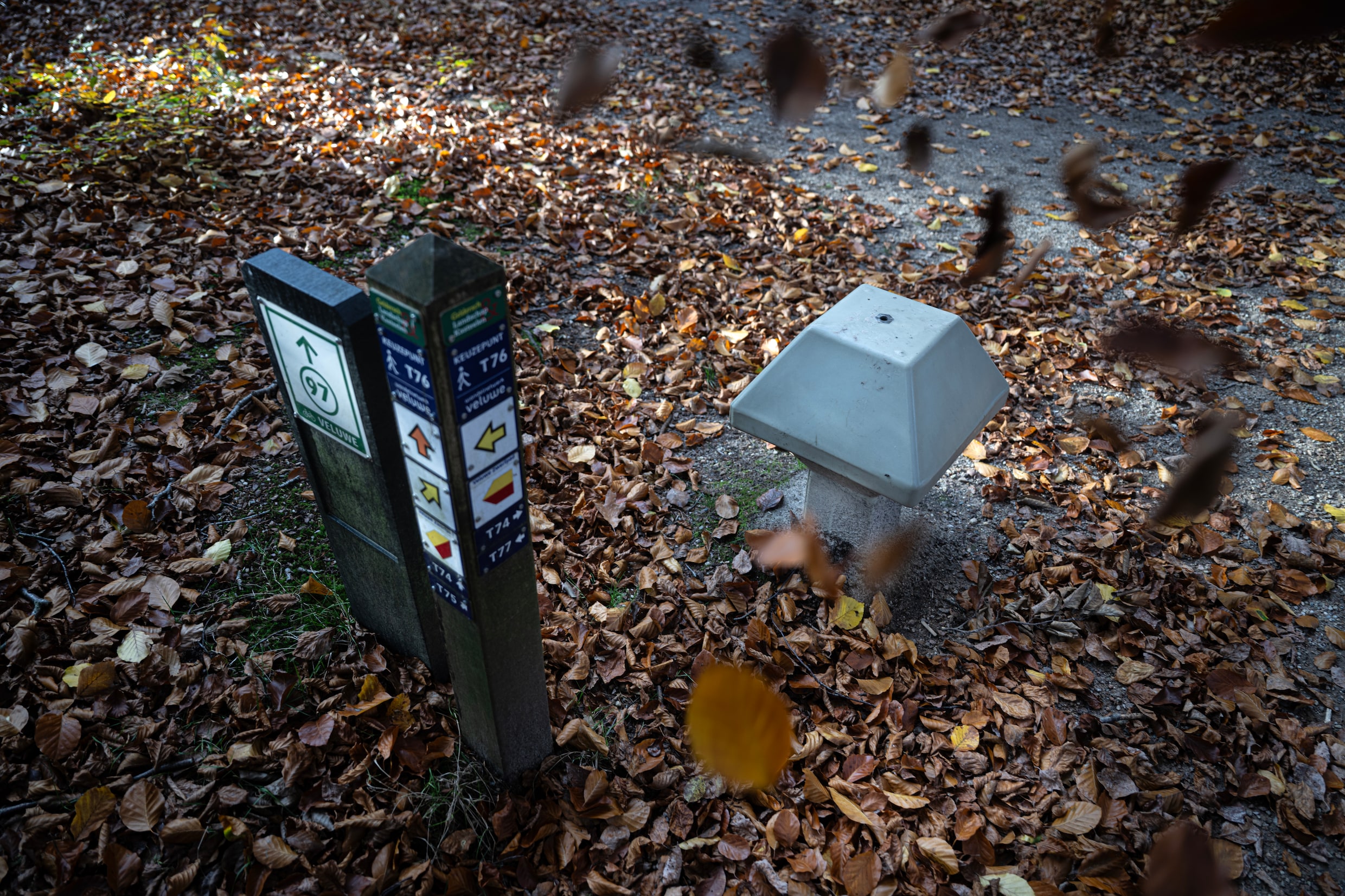 Midden in het bos van Schaarsbergen, langs het fietspad, staat een ANWB-paddenstoel. Zo’n wegwijzer voor fietsers. Maar deze is helemaal van grijs beton, de tekst ontbreekt. Zeker in reparatie, was mijn eerste gedachte. Dat was in april 2024.